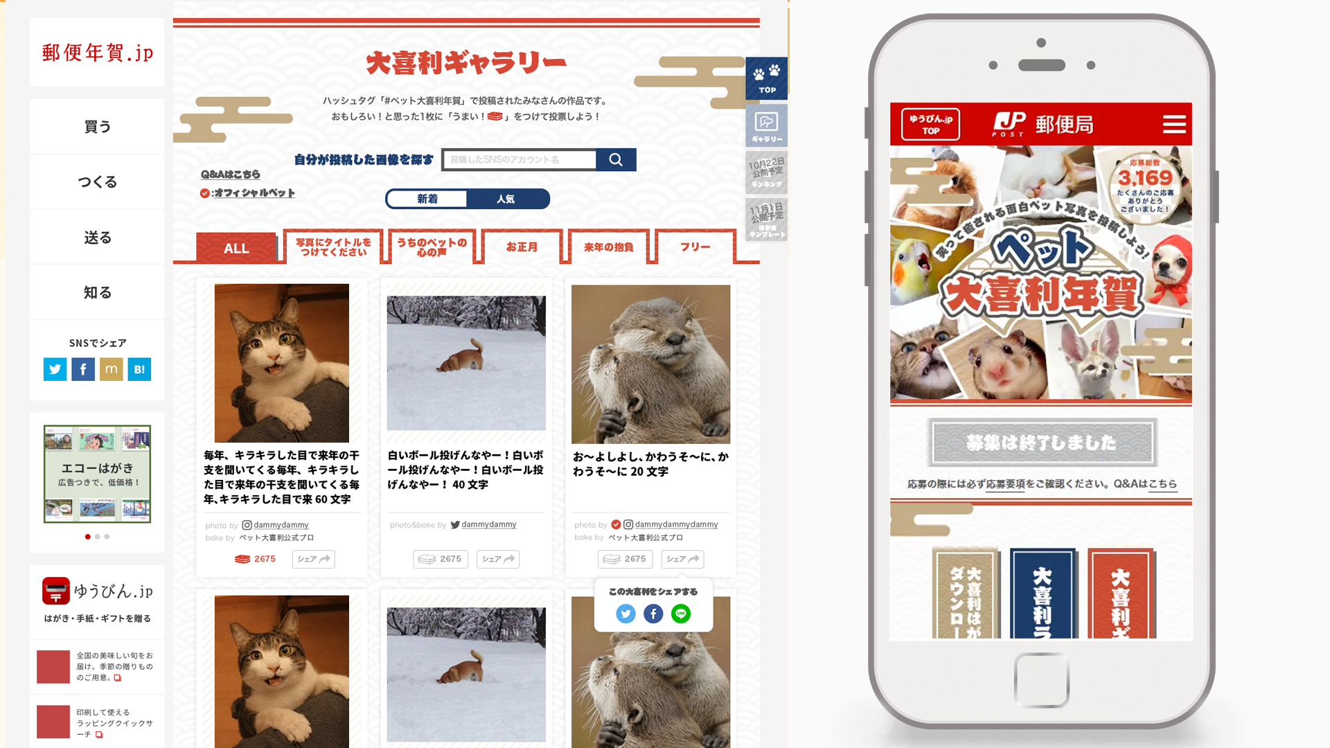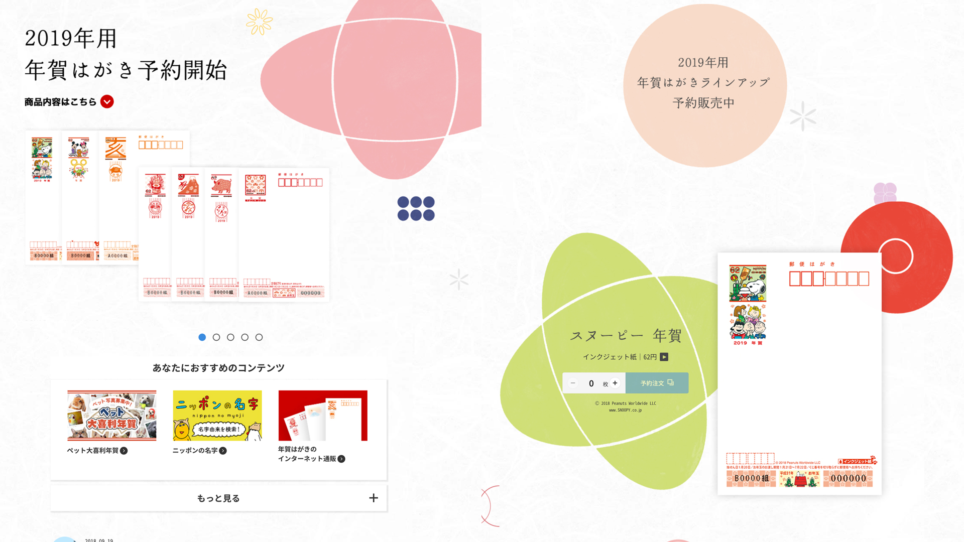 年賀はがきのプロモーションサイト「郵便年賀.jp」2019年度版。